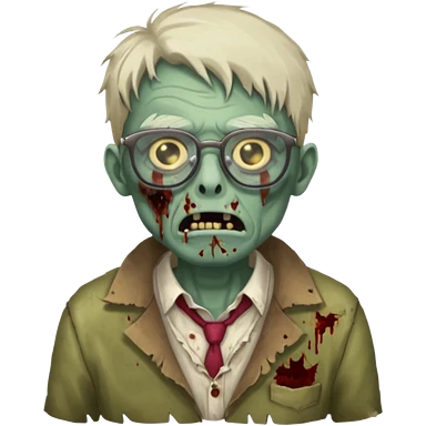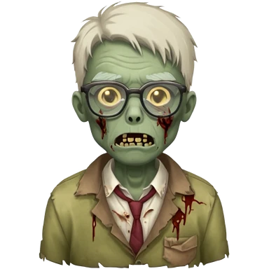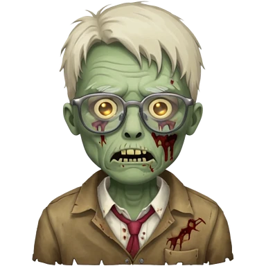 faça uma zombie de cabelo mediano com franjinha, oculos meio arredondado emoji