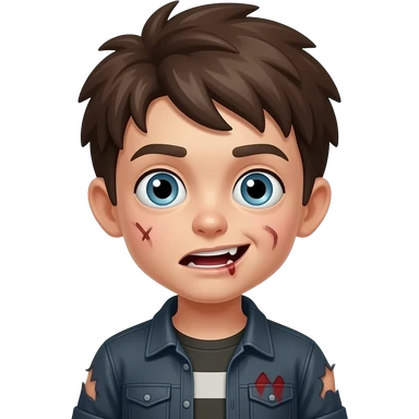 A young zombie with red veins in his eyes, green skin, wearing silver grillz, and black hair falling over his decaying (torn) eyebrows. He has a Coca-Cola drinking helmet on his head and wears a Chrome Hearts hoodie. emoji