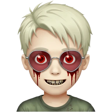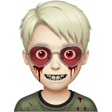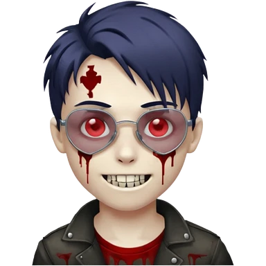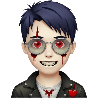 Zombie emo boy, chrome heart glasses and a scary smile, scars and blood under eyes emoji