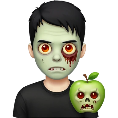 Zombie Emoji AppleIOS Style, lowfade Black Hair, and Black T-shirt emoji
