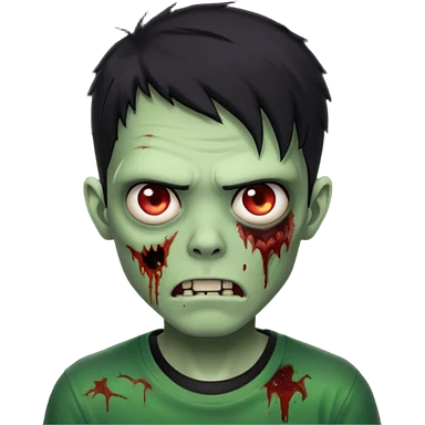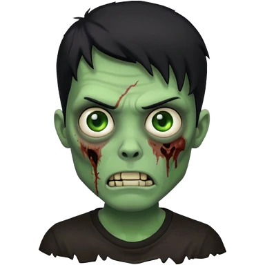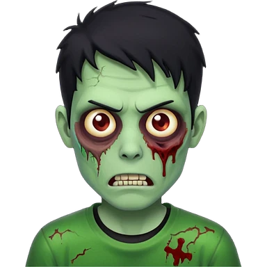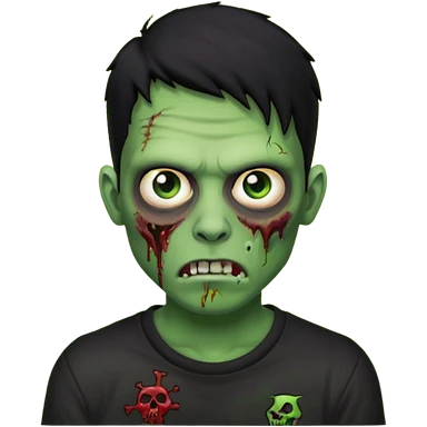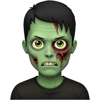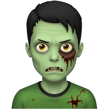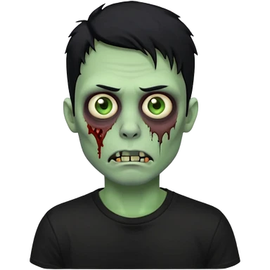 zombie iPhone emoji with buzz cut black hair and black t-shirt emoji