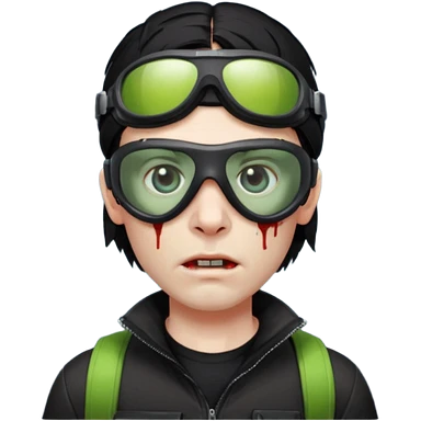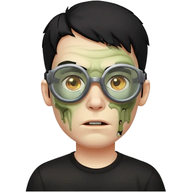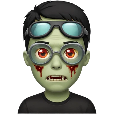 Zombie Emoji AppleIOS Style, lowfade Black Hair, Skin Goggles on right slide of The Head, and Black T-shirt emoji