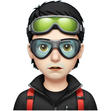 Zombie Emoji AppleIOS Style, lowfade Black Hair, Ski Goggles on right slide of The Head, and Black T-shirt emoji