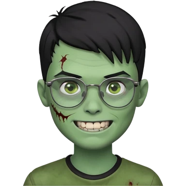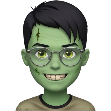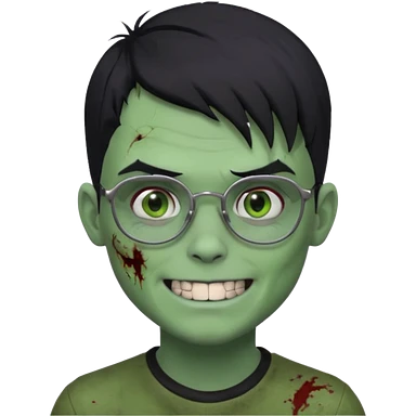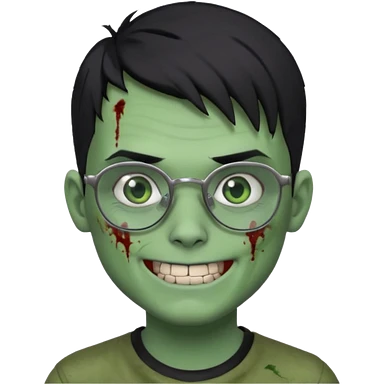 zombie emoji in WhatsApp style, young man, pale green skin, large yellowish eyes, dark circles, black messy hair, blood tears, silver eyebrow piercing, nose ring, hoodie, realistic, sharp facial features, slightly scared, creepy look emoji | AI Emoji Generator