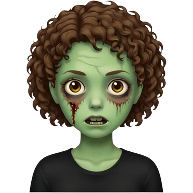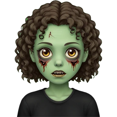 Zombie girl emoji com cabelo curto cacheado castanho com uma blusa preta emoji
