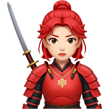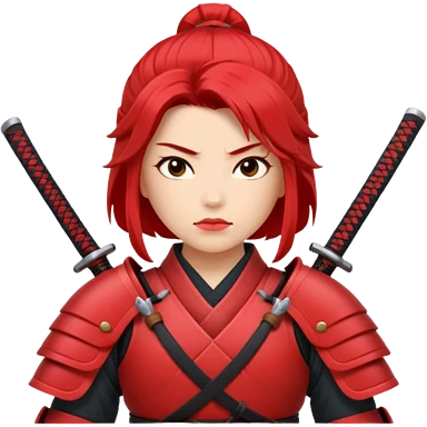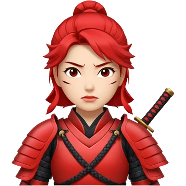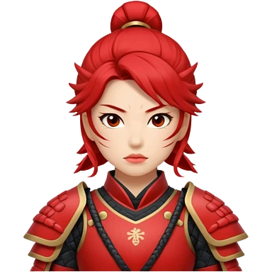 A female samurai with strong posture, red armor plates, and fierce determination. emoji