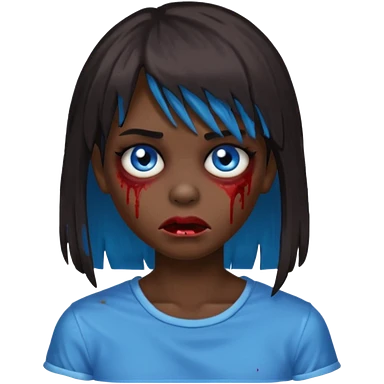 zombie emoji 🧟♀️ dark hair long her shoulders bangs emo and ragged haircut blue eyes emoji
