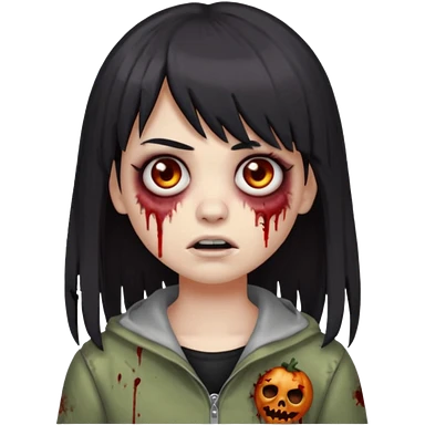 zombie girl with black long straight hair and bangs 🧟♀️ emoji | AI Emoji Generator