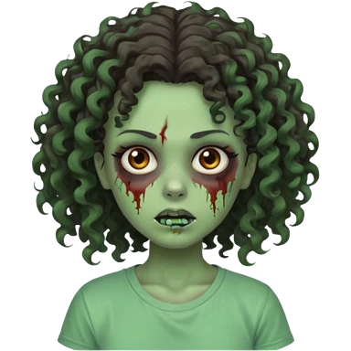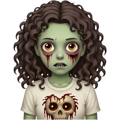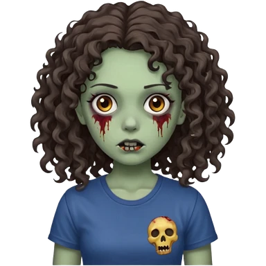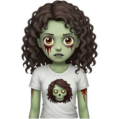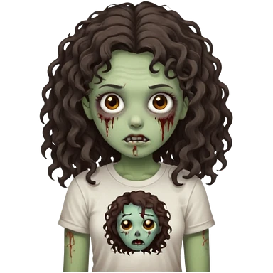 zombie girl with curly hair n brown eyes, dark and long hair 3a with wavy scalp, just a tshirt emoji