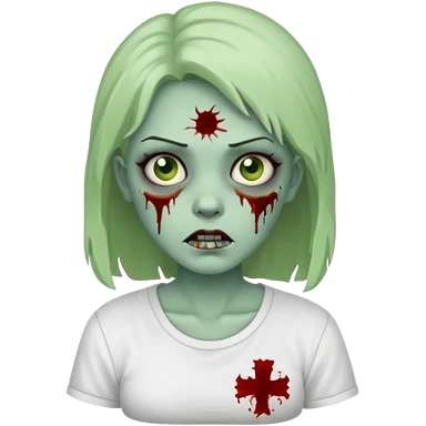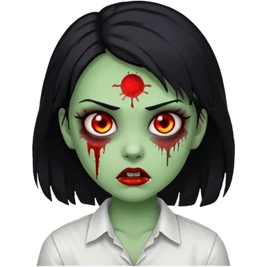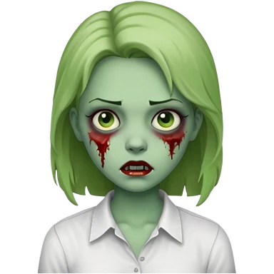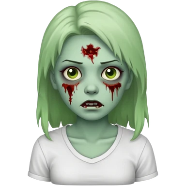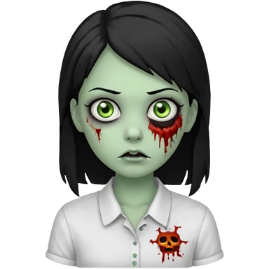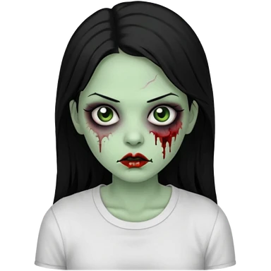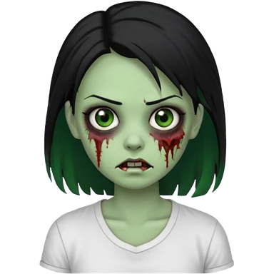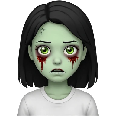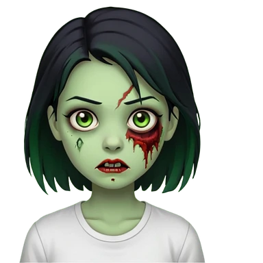 zombie girl with white shirt but similar to this with green skin black hair long emoji | AI Emoji Generator