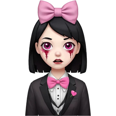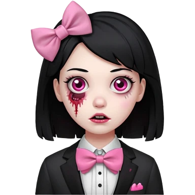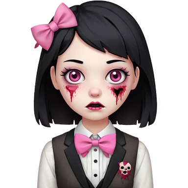 zombie green skin girl, black hair with pink bow tie emoji | AI Emoji Generator