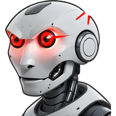 A sleek robot head with a glowing red crosshair over one eye emoji