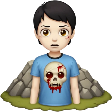 zombie boy with black buzz cut hair and white t shirt, apple style emoji emoji