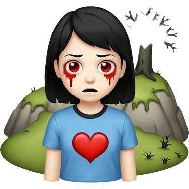 zombie emoji with short black hair and i ❤️ haunted mound t-shirt emoji