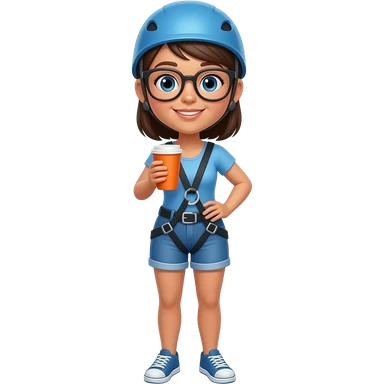 Zipline lady wearing blue Top, Blue Short and Orange Cup , shehas eyeglasses emoji