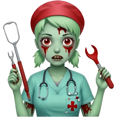 Zombie nurse in scrubs, red cross hat emoji | AI Emoji Generator