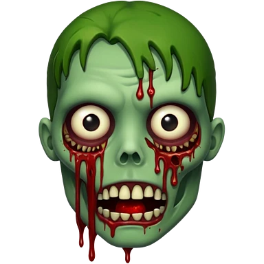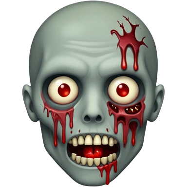 Zombie face, torn flesh, blood dripping, exposed bones, dark horror, no background emoji