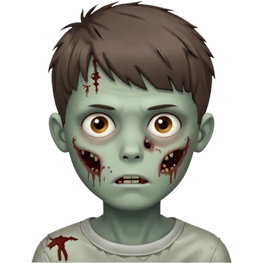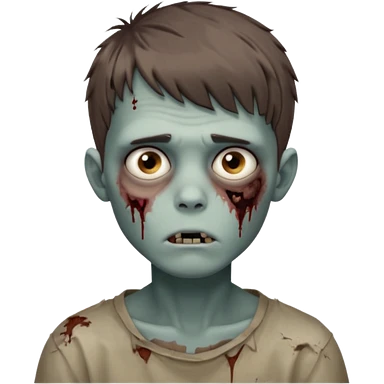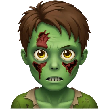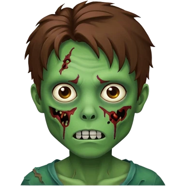 zombie boy youthful face, messy brown short hair in fringe haircut, closed mouth, without wrinkles emoji