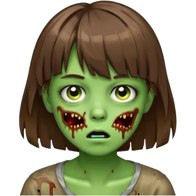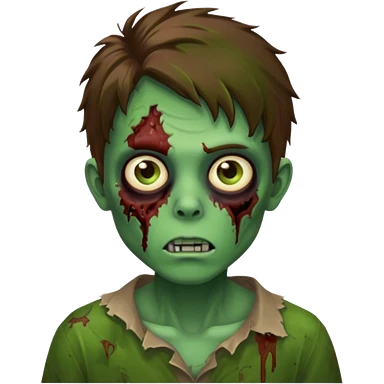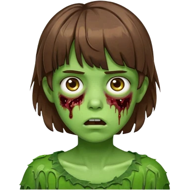 zombie slim youthful face, messy brown fringe, muted green skin tone, tired heavy-lidded eyes with visible under-eye darkness, a neutral slightly bored expression, and an overall low-energy, sleep-deprived, mentally fried vibe, emoji | AI Emoji Generator