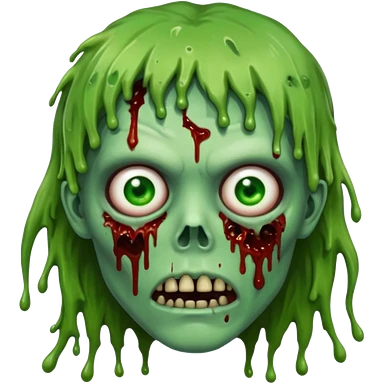 zombie slime youthful face, messy brown hair in fringe haircut, closed mouth, without wrinkles emoji