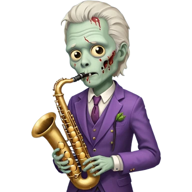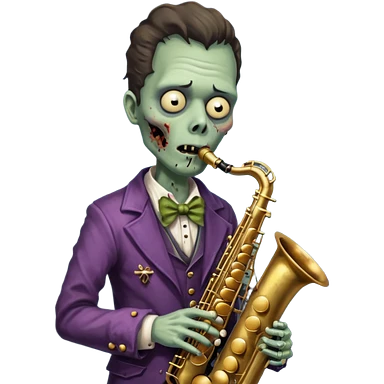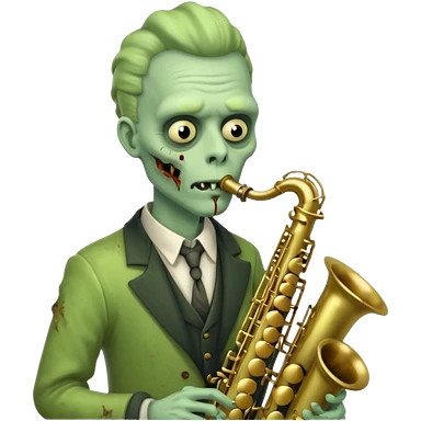 Zombie saxophonist – bent saxophone, puffed cheeks, eerie jazz vibe. emoji