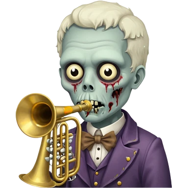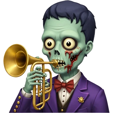 Zombie trumpeter – cracked trumpet, cheeks puffed, eerie parade feel. emoji | AI Emoji Generator