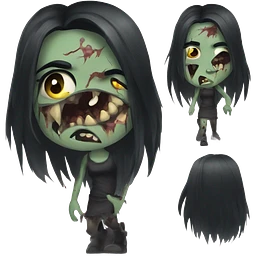 zombie vampire with a really dark skin and a sad face with yellow sharp teeth and blood and long hair covering the face emoji | AI Emoji Generator