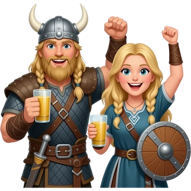 Blonde Viking cheering with horn glass both genders emoji