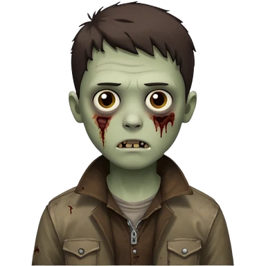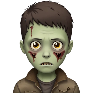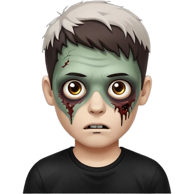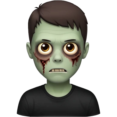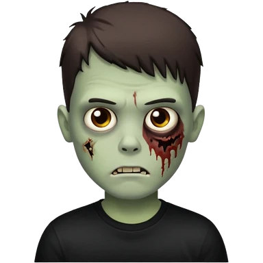 zombie white boy with dark brown edgar haircut and brown eyes (his skin is clear and white but with zombie scars) in black tee emoji | AI Emoji Generator