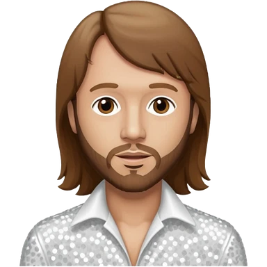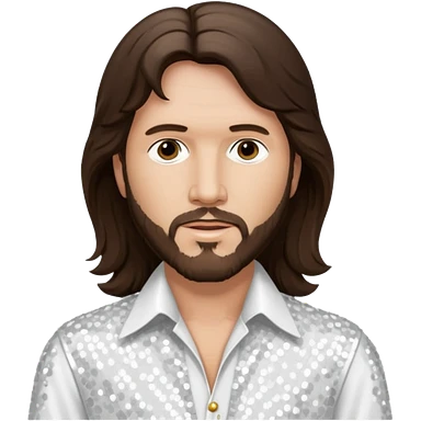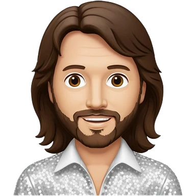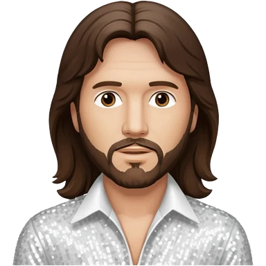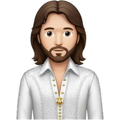 Barry Gibb from Bee Gees with long dark brown hair, white sequin outfit emoji