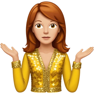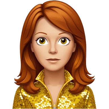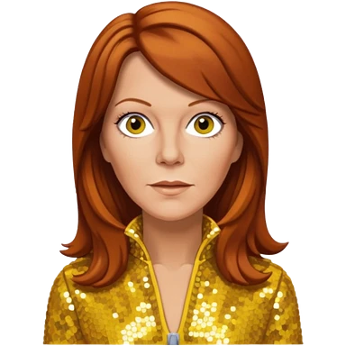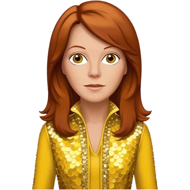 Anni-Frid Lyngstad from ABBA with long reddish brown hair, yellow sequin outfit emoji