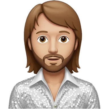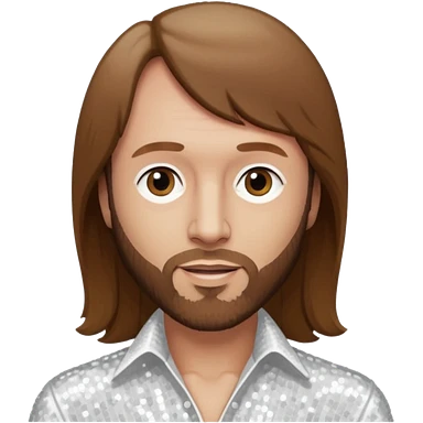 Maurice Gibb from Bee Gees with long brown hair, white sequin outfit emoji