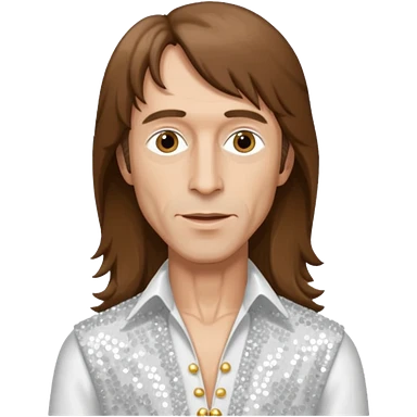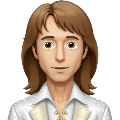 Robin Gibb from Bee Gees with long brown hair, white sequin outfit emoji