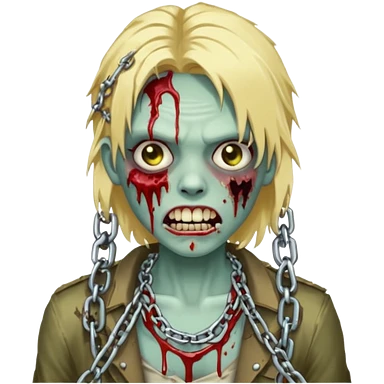 Zombie com dente de ouro e cabelo loiro com correntes emoji