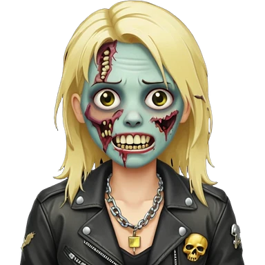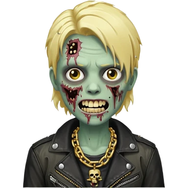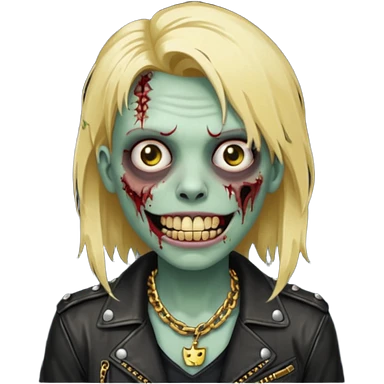 Zombie com dente de ouro e cabelo loiro com corrente e uma jaqueta de couro emoji