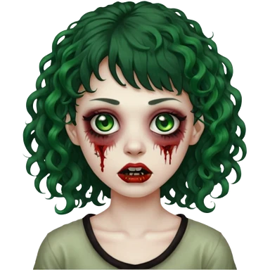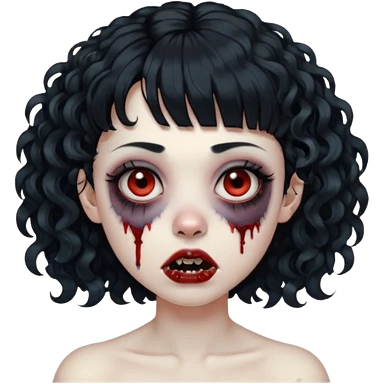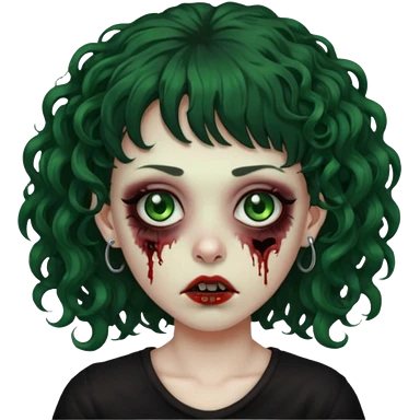 zombie woman with curly hair, bangs, and a septum piercing. emoji