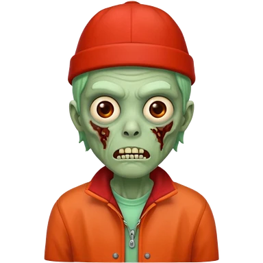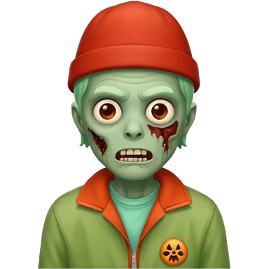zombie in red hats orange jacket emoji