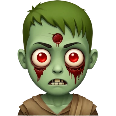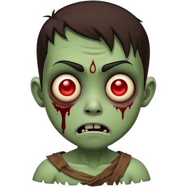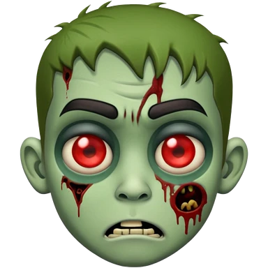 Zombie girl emoji with short red hair and bangs. Blue eyes, green skin, and a black top. emoji
