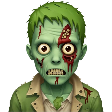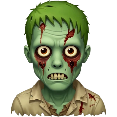 Zombie girl emoji with short red hair and bangs. Blue eyes, green skin, and a black top Her hair is slightly wavy emoji