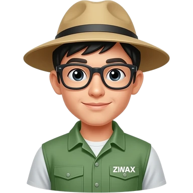 Zoo keeper male Chinese young man icon wear specs. Name Jeremy emoji | AI Emoji Generator