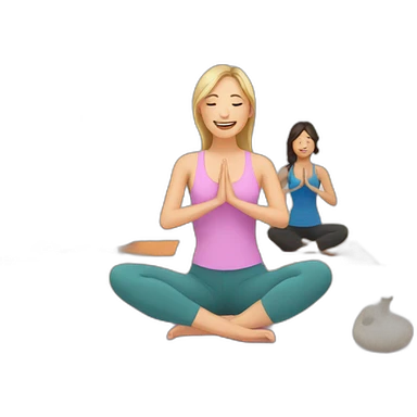 Long hair asian woman working on pale yellow laptop with brown eyes in zoom meeting emoji