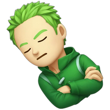 Roronoa Zoro with green hair, three swords, white shirt, green haramaki emoji