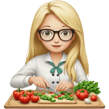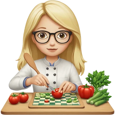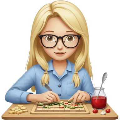 je voudrai un emoji d'une fille aux cheveux longs et blonds avec des lunettes entrain de découper, une entrain de faire un jeu de société, une qui cuisine, emoji
