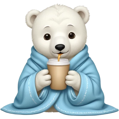 baby white polar in cozy blanket, drink coffee emoji