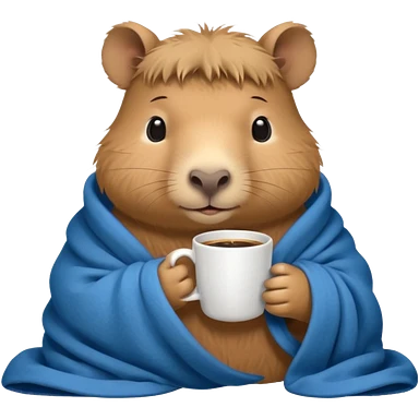 baby capypara in cozy blanket, drink coffee emoji