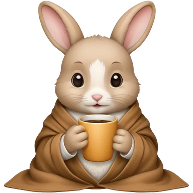 baby rabbit in cozy blanket, drink coffee emoji