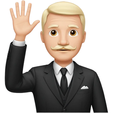 Adolf h , wearing suit and mustache small. Raising his hand to sun emoji