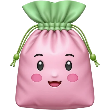 A Korean fortune pouch (bokjumeoni) in iPhone emoji style, pastel pink and light green colors, soft 3D glossy texture, centered, no outlines, transparent background. emoji