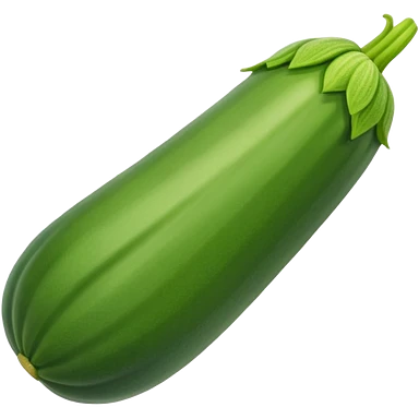 zucchini, whole, slight angle, slender, curved, dark green with light striations, stem end, glossy, 3D clean style, transparent background, optimized for emoji size emoji