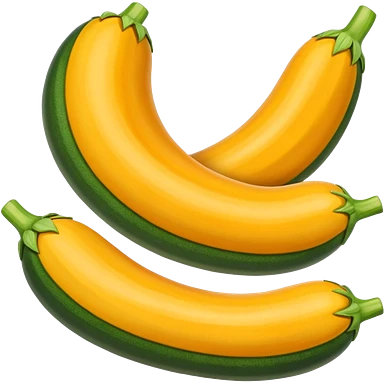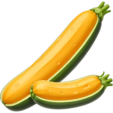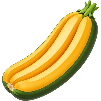 zucchini, whole, slight angle, slender, curved, dark green with light striations, stem end, glossy, 3D clean style, transparent background, optimized for emoji size emoji